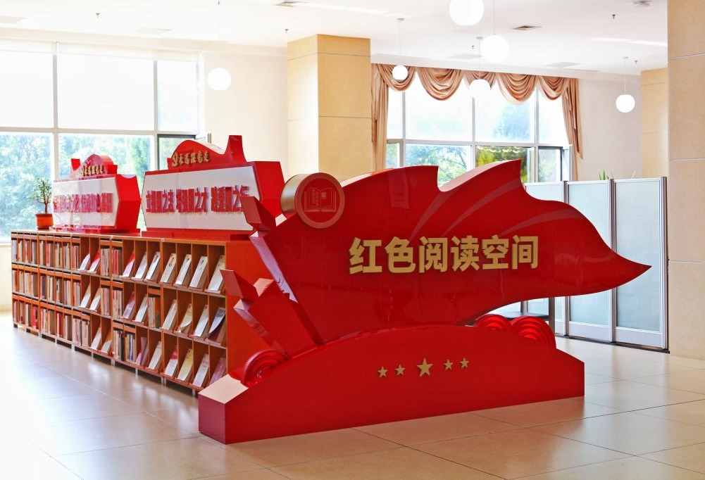 图书馆利用本馆的丰富文献资源和场地资源,在一楼建设海边红书坊——红色阅读空间,设有党建图书资料阅览专区、党建主题书架和党建主题宣传展,为全校师生学习党史、新中国史、改革开放史、社会主义发展史搭建学习、交流、沟通平台。